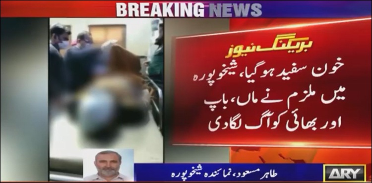 تفصیلات کے مطابق درندگی اور سفاکیت کا یہ واقعہ پنجاب کے شہر شیخوپورہ کے گاؤں مدار میں پیش آیا، جہاں ایک ناخلف و بدبخت بیٹے نے اپنی جنت اور باپ، بھائی کو زندہ جلا دیا۔
