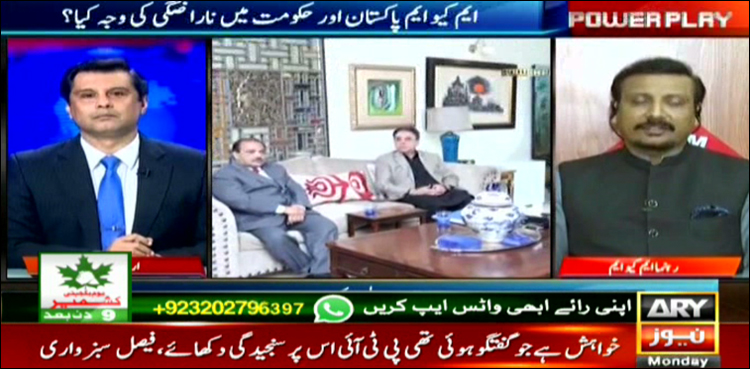 تفصیلات کے مطابق ایم کیو ایم کے رہنما فیصل سبزواری نے اے آر وائی نیوز پروگرام ’پاور پلے‘ میں گفتگو کرتے ہوئے کہا کہ خواہش ہے جو دفتر پر گفتگو ہوئی تھی پی ٹی آئی اس پر سنجیدگی دکھائے، کابینہ یا وزارت مطالبہ نہیں شہری علاقوں کے مسائل حل کرنا چاہتے ہیں۔