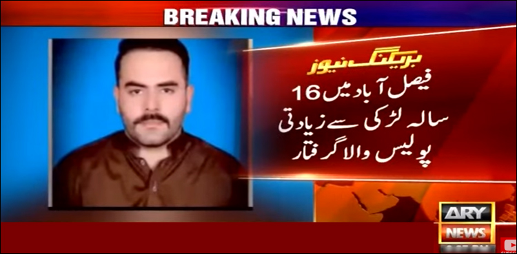 فیصل آباد: پنجاب کے شہر فیصل آباد میں 16 سالہ لڑکی سے مبینہ زیادتی کے الزام میں پولیس اہلکار کو گرفتار کرلیا گیا۔