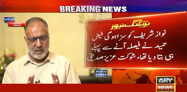 جسٹس ریٹائرڈ شوکت عزیز صدیقی نے دعویٰ کیا ہے کہ نوازشریف کو سزا ہو گی یہ فیض حمید نے فیصلے سے پہلے بتا دیا تھا۔