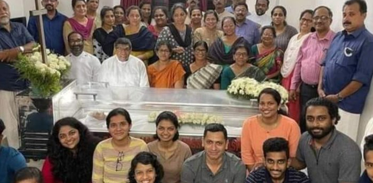بھارتی میڈیا رپورٹس کے مطابق یہ تصویر ریاست کرناٹک کے ایک گاؤں سے سامنے آئی جس میں ایک خاندان نے اپنی رشتے دار 95 سالہ خاتون ‘ماری اما’ کی آخری رسومات پر باقاعدہ تصویر کھنچوائی۔