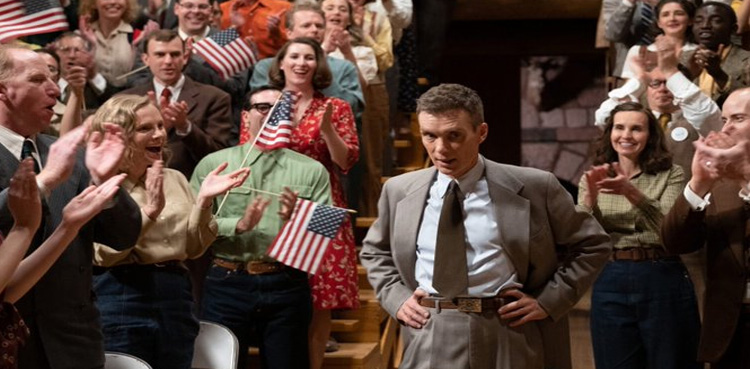 ایسے میں ایک شائق کی عقابی نگاہوں نے ’اوپن ہائیمر‘ میں بظاہر ایک بڑی غلطی پکڑتے ہوئے اس کی نشاندہی کی ہے، ہیروشیما اور ناگاساکی پر بمباری کے بعد جب اوپن ہائیمر کو ہجوم سے خطاب کے لیے بلایا جاتا ہے، تو اس سین میں بہت سے لوگ امریکی پرچم لہرا رہے ہیں۔