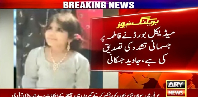 تفصیلات کے مطابق ڈی آئی جی سکھر جاوید جسکانی نے بتایا کہ میڈیکل بورڈ نے فاطمہ پر جسمانی تشدد کی تصدیق کی ہے اور بچی کے ساتھ جنسی زیادتی کا خدشہ ظاہر کیا ہے۔