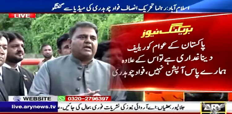 اسلام آباد: پاکستان تحریک انصاف کے رہنما فواد چوہدری کا کہنا ہے کہ حکومت نے آئی ایم ایف پروگرام میں جاگر عوام کی کمر توڑ دی ہے، پاکستان کے عوام کو ریلیف دینا غداری ہے تو اس کے علاوہ ہمارے پاس آپشن نہیں۔