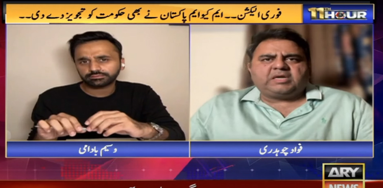 فواد چوہدری نے کہا کہ الیکشن تو کروانے ہیں، فیصلہ کریں کم نقصان کروا کر کروانے ہیں یا زیادہ، ہم نے کوئی بات نہیں کرنی، واحد بات الیکشن کی تاریخ پر ہونی ہے۔