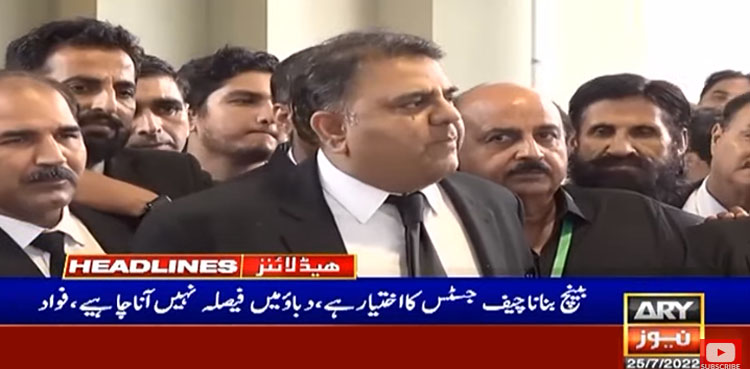 اسلام آباد: تحریک انصاف کے رہنما فواد چوہدری کا کہنا ہے کہ بینچ بنانا تو چیف جسٹس پاکستان کا اختیار ہے لیکن دباؤ میں فیصلہ نہیں آنا چاہیے۔