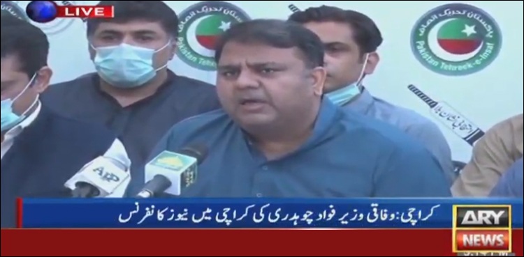 اے آر وائی نیوز کی رپورٹ کے مطابق وفاقی وزیر فواد چوہدری نے کراچی میں ںیوز کانفرنس کرتے ہوئے کہا کہ افسوس کی بات ہے پیپلزپارٹی مولانا فضل الرحمان کی قیادت میں آگئی، پیپلزپارٹی کو مولانا فضل الرحمان جیسے رہنما کے تحت کام کرنا پڑرہا ہے۔