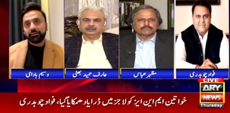 اے آر وائی نیوز کے پروگرام ” الیونتھ آور“ میں گفتگو کرتے ہوئے وفاقی وزیر اطلاعات فواد چوہدری نے کہا کہ خواتین ایم این ایز پارلیمنٹ لاجز چھوڑنے پر مجبور ہوگئی تھیں، خواتین ایم این ایز کو لاجز میں ڈرایا دھمکایا گیا، نجی جتھے اور فورس بنانا غیر قانونی عمل ہے۔