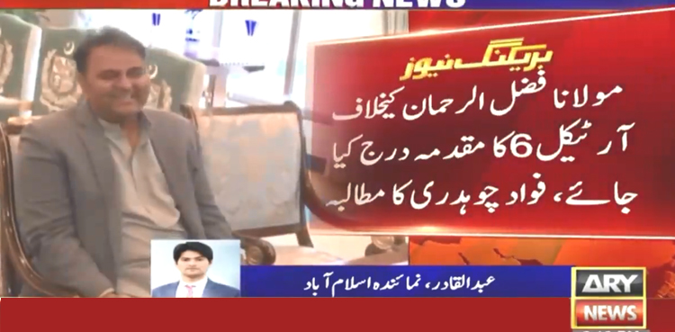 فوادچوہدری کا فضل الرحمان کیخلاف آرٹیکل 6 کا مقدمہ درج کرنے کا مطالبہ