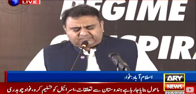 پی ٹی آئی کے مرکزی رہنما فواد چوہدری نے کہا ہے کہ ہندوستان سے تعلقات بحال اور اسرائیل کو تسلیم کرنے کیلیے ملک میں ماحول بنایا جارہا ہے۔