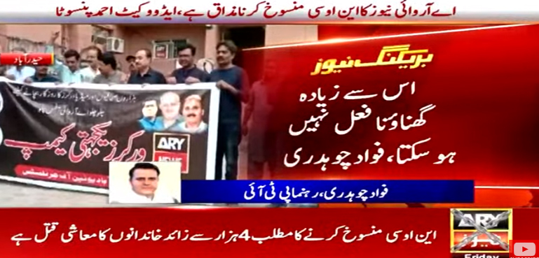 پی ٹی آئی رہنما فواد چوہدری نے اے آر وائی نیوز کے این او سی کی منسوخی کی شدید مذمت کرتے ہوئے کہا ہے کہ اس سے زیادہ گھناؤنا اقدام نہیں ہوسکتا۔