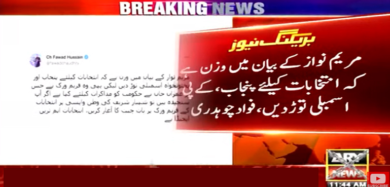 پاکستان تحریک انصاف کے رہنما فواد چوہدری نے کہا ہے کہ مریم نواز کے اس بیان میں وزن ہے کہ انتخابات کے لیے کے پی اور پنجاب اسمبلی توڑ دیں۔