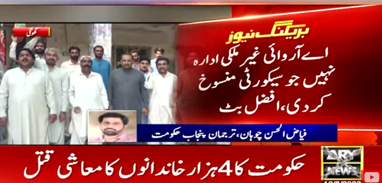 ترجمان پنجاب حکومت فیاض الحسن چوہان نے اے آر وائی نیوز کے این او سی کی منسوخی کی شدید مذمت کرتے ہوئے کہا ہے کہ اے آر وائی نیوز نے ہمیشہ پاکستان کی سربلندی کی جنگ لڑی ہے۔