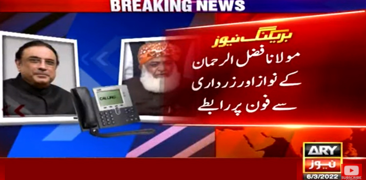 پاکستان ڈیموکریٹک الائنس کے سربراہ مولانا فضل الرحمٰن نے ایک بار پھر سابق وزیراعظم نواز شریف اور سابق صدر آصف علی زرداری سے ٹیلیفونک رابطہ کیا ہے۔