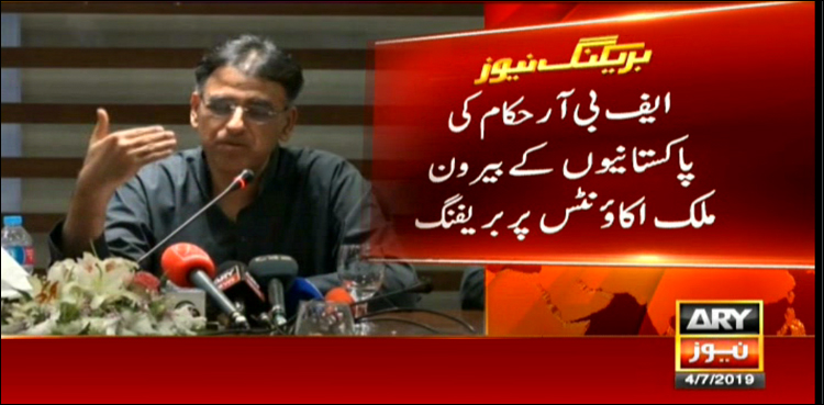 اسد عمر کا کہنا تھا کہ لوگوں کے اربوں ڈالرز باہر پڑےہوئےہیں، اسی وجہ سے پاکستان میں لوگوں پر نہ چاہتےہوئے بھی اضافی بوجھ ڈالاجارہاہے، بیرون ملک میں موجود پاکستانیوں کےاربوں ڈالرزواپس لانے کے لیے ایف بی آر سنجیدہ اقدامات نہیں کررہا۔