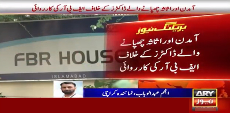 کراچی: شہر قائد میں آمدن اور اثاثہ چھپانے والے ڈاکٹرز کے خلاف ایف بی آر نے کارروائی کرتے ہوئے 17 بڑے اسپتالوں کے ڈاکٹرز کا ڈیٹا طلب کرلیا۔