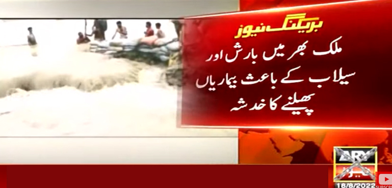 ملک بھر میں جاری غیر معمولی بارشوں اور سیلاب کے باعث بیماریاں پھیلنے کا خدشہ پیدا ہوگیا ہے اور اس حوالے سے قومی ادارہ صحت نے الرٹ جاری کردیا۔