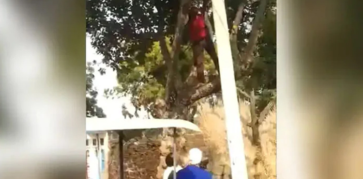 کرونا ویکسین سے خوفزدہ بھارتی شہری ویکسین سے بچنے کےلیے درخت پر چڑھ گیا، واقعے کی ویڈیو نے صارفین کو ہنسنے پر مجبور کردیا۔