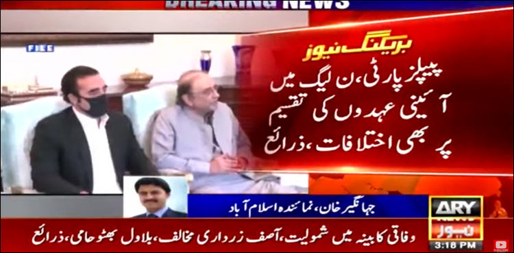 ذرائع پیپلز پارٹی کے مطابق پیپلز پارٹی اور ن لیگ میں آئینی عہدوں کی تقسیم پر بھی اختلافات برقرار ہیں، ن لیگ پیپلز پارٹی کو من پسند وزارتیں دینے سے کترانے لگی ہے۔