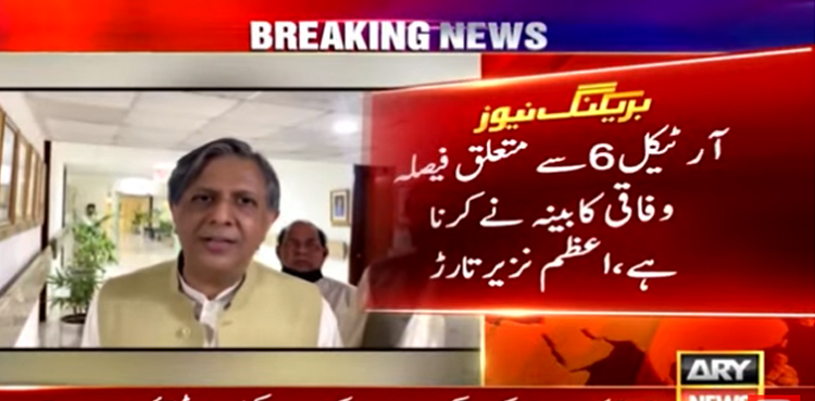 وزیرقانون کا کہنا تھا کہ وزرات قانون وداخلہ میں آرٹیکل 6 سے متعلق ابتدائی مشاورت ہوئی، آرٹیکل6سےمتعلق قانونی رائےآنی ہے تاہم آرٹیکل 6 سے متعلق فیصلہ وفاقی کابینہ نے کرنا ہے۔
