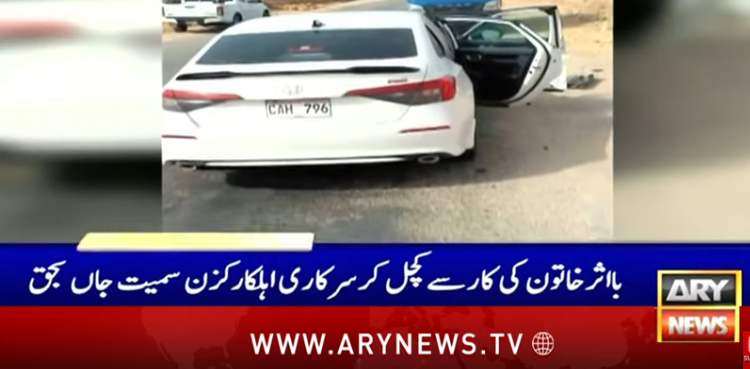 ٹھٹھہ سےخاتون کی کار چلاتے وقت کی سی سی ٹی وی حاصل کی گئی ہے۔ خاتون ایک بینک کے ڈپٹی سی ای او کی قریبی عزیز بتائی جاتی ہے اور حادثے میں استعمال ہونے والی گاڑی بھی بینک کےنام پر ہے۔