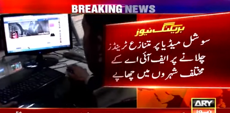 لاہور: وفاقی تحقیقاتی ادارے نے اہم شخصیات اورحساس اداروں کیخلاف سوشل میڈیا ٹرینڈ چلانے والے 8 افراد کو گرفتار کرلیا۔