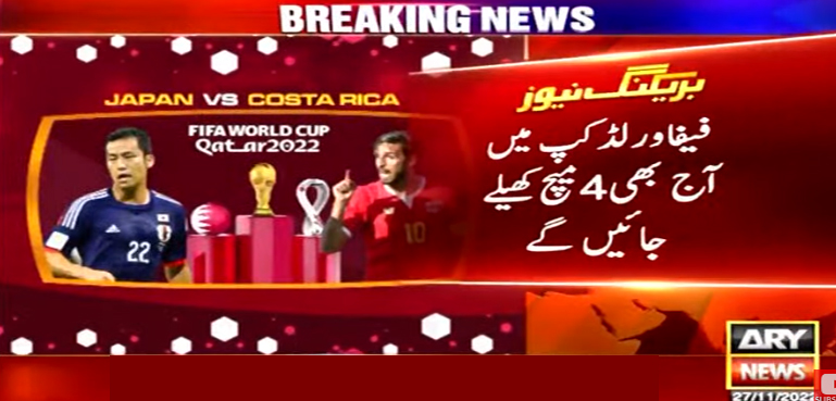 اتوار کو پہلے میچ میں جاپان اور کوسٹاریکا کی ٹیمیں آمنےسامنے ہوں گے جب کہ دوسرے میں بیلجیئیم اور مراکش کی ٹیمیں مد مقابل ہوں گی۔