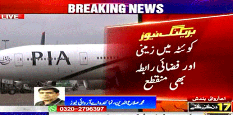کوئٹہ میں زمینی اور فضائی رابطہ بھی منقطع ہوگیا ہے اور ریڈار سروس میں بھی فنی خرابی پیدا ہوئی ہے۔