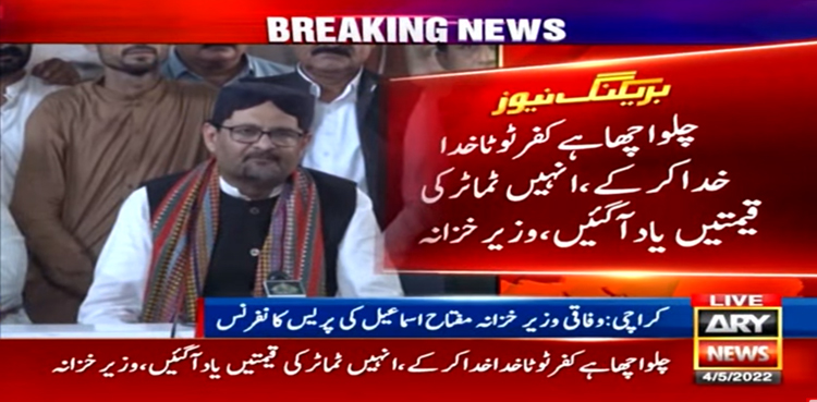 وزیر خزانہ نے کہا کہ آٹے کا 20 کلو کا تھیلا 800 روپے میں مل رہا ہے، ہم نے یوٹیلیٹی اسٹوز میں گھی پر 200 روپے کی سبسڈی  دی ہے، عمران خان نے 20 ہزار ارب روپے سے زائد قرض لیا، عمران خان نے جو قرض لیا 71 سال کے قرض کا 80 فیصد ہے، عمران خان کو آئی ایم ایف سے 6 ارب ڈالرز کا بیل آؤٹ پیکچ ملا تھا۔