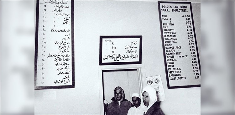 ریاض : سعودی اسکالر نے ریاض ریلوے اسٹیشن ریسٹورنٹ کی 60 برس قدیم تصویر سوشل میڈیا پر شیئر کردی، جس پر چھ دہائیوں پرانے کھانے پینے کی اشیاء نرخ بھی درج ہیں۔