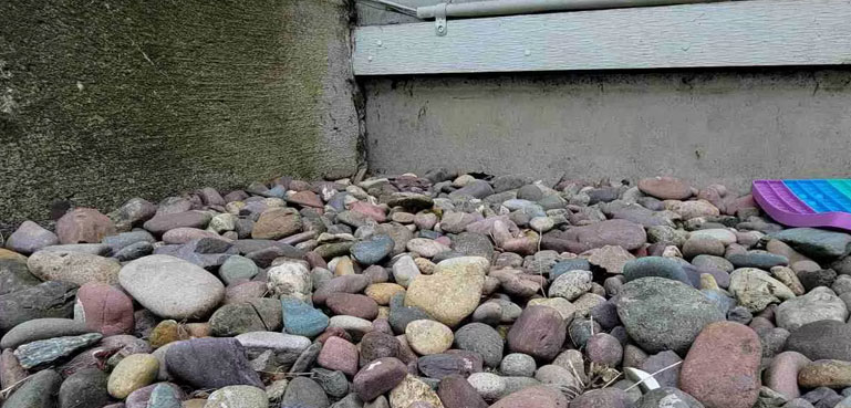 تصویر دیکھیں اس میں کسی عمارت کا بیرونی منظر دکھایا گیا ہے جس میں آپ بہت سارے پتھر دیکھ سکتے ہیں، تصویر دیکھ کر یہ بھی اندازہ لگایا جاسکتا ہے کہ یہاں حال ہی میں بارش ہوئی ہے جس کی وجہ سے اطراف میں کچھ کچھ نمی نظر آ رہی ہے۔