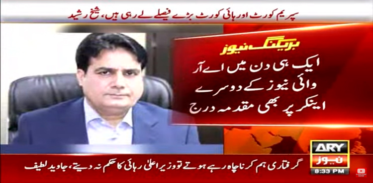 اس سے قبل اے آر وائی نیوز کے اینکر پرسن ارشد شریف کے خلاف حیدر آباد میں مقدمہ درج کیا گیا ہے، مقدمہ ریاستی اداروں کےخلاف گفتگو کرنے کے تحت درج کیا گیا، پولیس نے بتایا کہ طیب حسین نامی نوجوان نے گزشتہ روزمقدمہ درج کرایا ہے۔