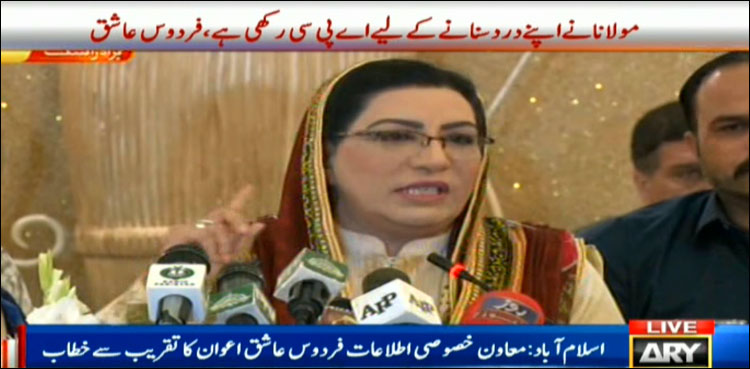 فردوس عاشق اعوان نے کہا اپوزیشن کی اے پی سی میں توجہ صرف کھانے پینے پر ہوگی، اپنے دکھ درد سنانے کے لیے فضل الرحمان نے اے پی سی رکھی، فضل الرحمان جو اسمبلی سے باہر ہیں ہمیں ان سے ہمدردی ہے۔