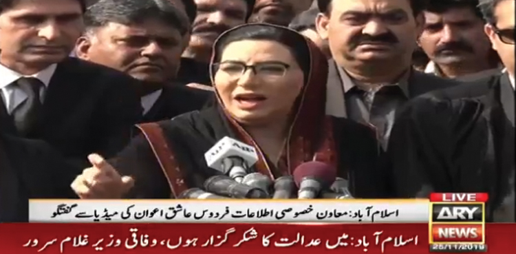 تفصیلات کے مطابق معاون خصوصی برائے اطلاعات فردوس عاشق اعوان نے اسلام آباد ہائی کورٹ کے باہر میڈیا سے گفتگو کرتے ہوئے کہا آج اللہ کی شکر گزار ہوں کہ عدالت نے ہمیں سرخروکیا اور عدالتی حقائق سےآگاہی دلائی۔
