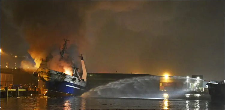 اوسلو : ناروے میں ڈیزل سے بھرے روسی جہاز میں آگ لگ گئی، آگ پر قابو پانے کی کوششوں کے دوران جہاز سمندر میں ڈوب گیا۔