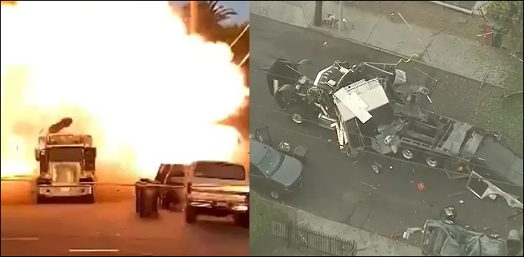 غیرملکی خبررساں ادارے کی رپورٹ کے مطابق امریکی ریاست لاس اینجلس میں آتشبازی کے سامان سے بھری گاڑی میں خوفناک دھماکا ہوا جس کے نتیجے میں متعدد گاڑیاں تباہ ہوگئیں۔