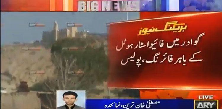 گوادر: صوبہ بلوچستان کے ساحلی شہر گوادر کے فائیو اسٹار ہوٹل میں 3 حملہ آوروں کے داخل ہونے اور فائرنگ کی اطلاعات ہیں۔