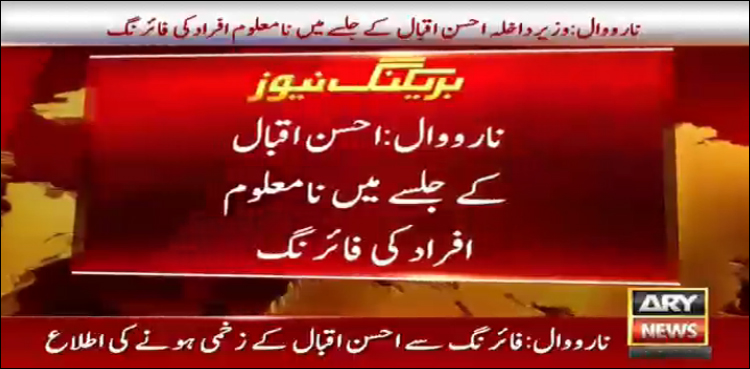 تفصیلات کے مطابق وزیر داخلہ احسن اقبال نارووال میں کرسچن کمیونٹی کی کارنر میٹنگ سے خطاب کرکے نکلے تو مسلح شخص نے ان پر فائرنگ کردی۔
