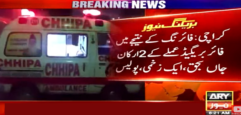 کراچی میں بلال چورنگی کے قریب فائر بریگیڈ کے دفتر پر دو مسلح ملزمان نے اندھا دھند فائرنگ کردی جس کے نتیجے میں 2 کارکن جاں بحق اور ایک زخمی ہوگیا۔