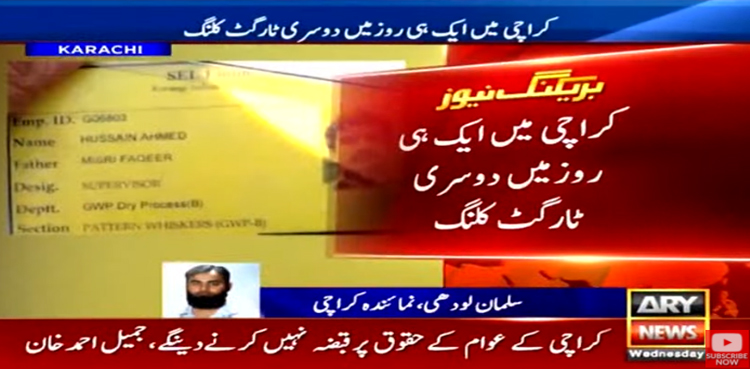 شہر قائد میں چند ہی گھنٹوں کے دوران ٹارگٹ کلنگ کے دو مختلف واقعات پیش آئے، جن میں سے ایک کو ہائی پروفائل قرار دیا جارہا ہے۔
