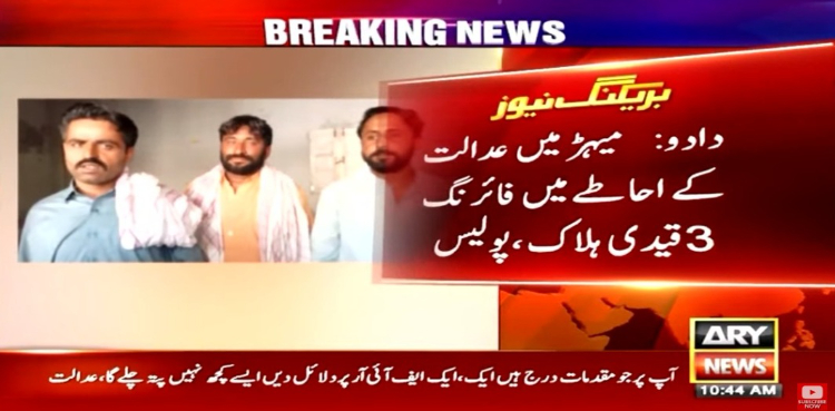 میہڑ کی عدالت کے احاطے میں جھگڑے کے دوران گولیاں چل گئیں جس کے نتیجے میں 3 قیدی ہلاک ہوگئے۔