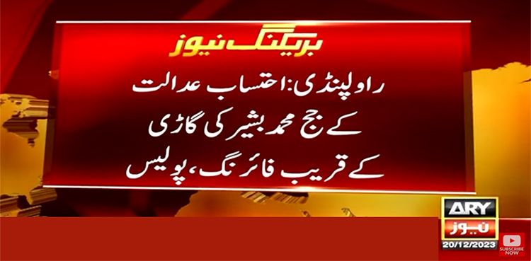 راولپنڈی میں احتساب عدالت کے جج محمد بشیر کی گاڑی کے قریب فائرنگ کا واقعہ پیش آیا ہے۔