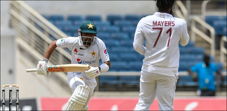 جمیکا: پہلے ٹیسٹ میچ کے تیسرے روز ویسٹ انڈیز کے خلاف دوسری اننگز میں قومی ٹیم کی 4 وکٹیں 91 رنز پر گر گئیں۔