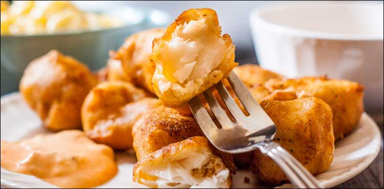مزیدار فش نگٹس تیار ہیں۔