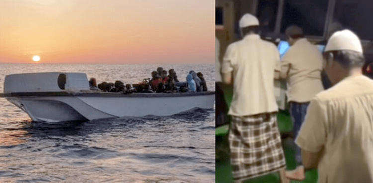 گہرے سمندر میں ایک کشتی پر ماہی گیروں کی نماز پڑھنے والی ویڈیو سوشل میڈیا پر گردش کررہی ہے۔