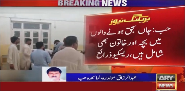 اے آر وائی نیوز کی رپورٹ کے مطابق بلوچستان کے شہر حب میں اوتھل کے قریب ٹریفک حادثے کے نتیجے میں خاتون اور بچے سمیت 5 افراد جاں بحق اور 3 زخمی ہوگئے۔