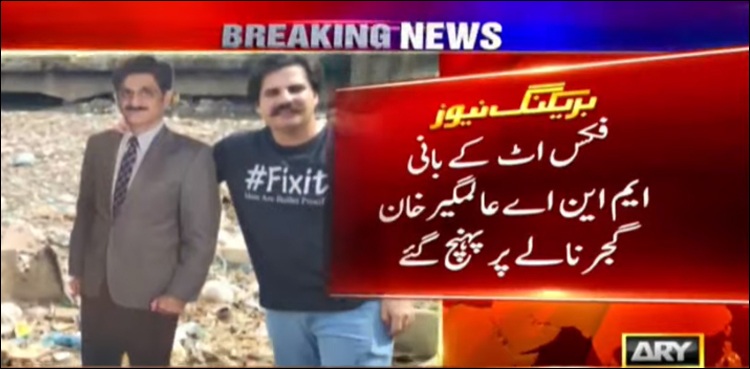 کراچی: تحریک انصاف کے رکن قومی اسمبلی اور سماجی تنظیم فکس اٹ کے بانی عالمگیر خان نے گجر نالے کے کچرے پر وزیر اعلیٰ سندھ مراد علی شاہ کی تصویر لگا کر انوکھا احتجاج ریکارڈ کروایا۔