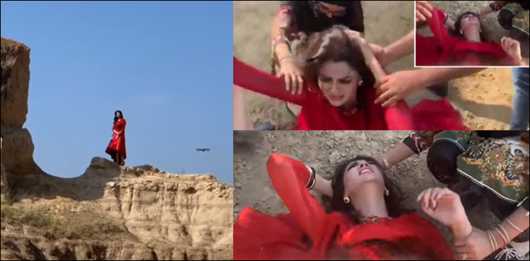 انٹرنیٹ پر وائرل ویڈیو کےمطابق فضا علی پتھریلے اور اونچے مقام پر شوٹنگ میں مصروف تھیں کہ اس دوران انہیں منظر عکس بند کرنے کے لیے اونچے مقام پر بھیجا گیا۔