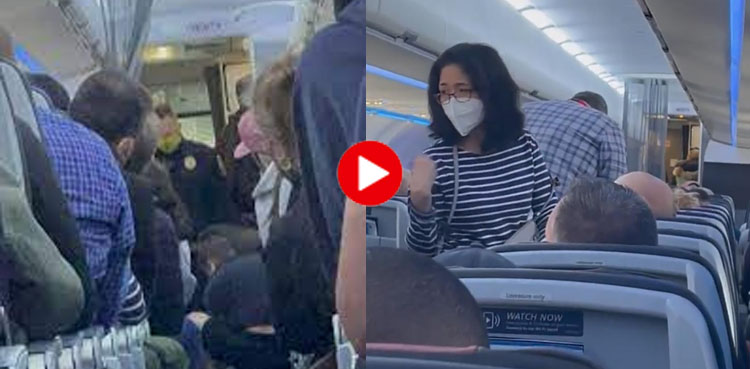 لیکن ایک بار جب وہ جارحانہ ہو گیا تو عملے کے ایک رکن نے مبینہ طور پر اسے روکنے کے لیے کافی کے برتن سے مارا اور پولیس کے آنے تک دیگر مسافروں کو روکنا پڑا گیا۔