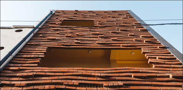 اس عمارت کی تعمیر میں اینٹوں کو ایک دوسرے کے اوپر رکھنے کے بجائے 2 سے 3 انچ کے فاصلے پر رکھا گیا ہے جبکہ انہیں لہریے دار شکل میں تعمیر کیا گیا ہے۔